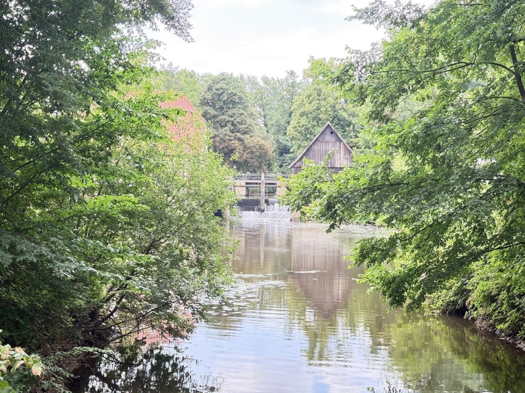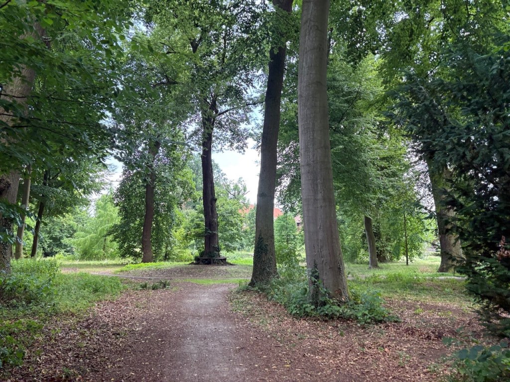 After crusty bread rolls we wander into a forest towards Rheda Castle. It’s not open today but you can visit the surrounding gardens for free and pay €5 to go inside the church which T does. It doesn’t look enticing to me so I give it a miss and wait outside with the mossies.