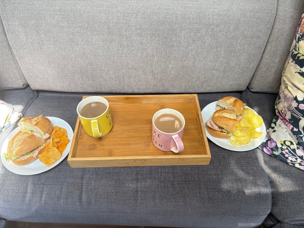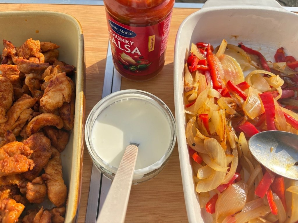 A beer in the sunshine and then we head back to the van for snacks, more beer and eventually enchiladas sitting outside on a car park. Living the high life lol.