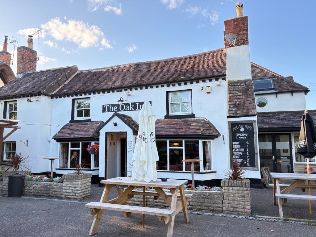 Our first hop is to The Oak Inn in Defford near Worcester. We left home mid afternoon as we had a mini drain crisis to resolve and find the traffic is pretty terrible on the M6. We arrive just before 7pm and park up alongside one other van on a huge car park at the rear of the pub.