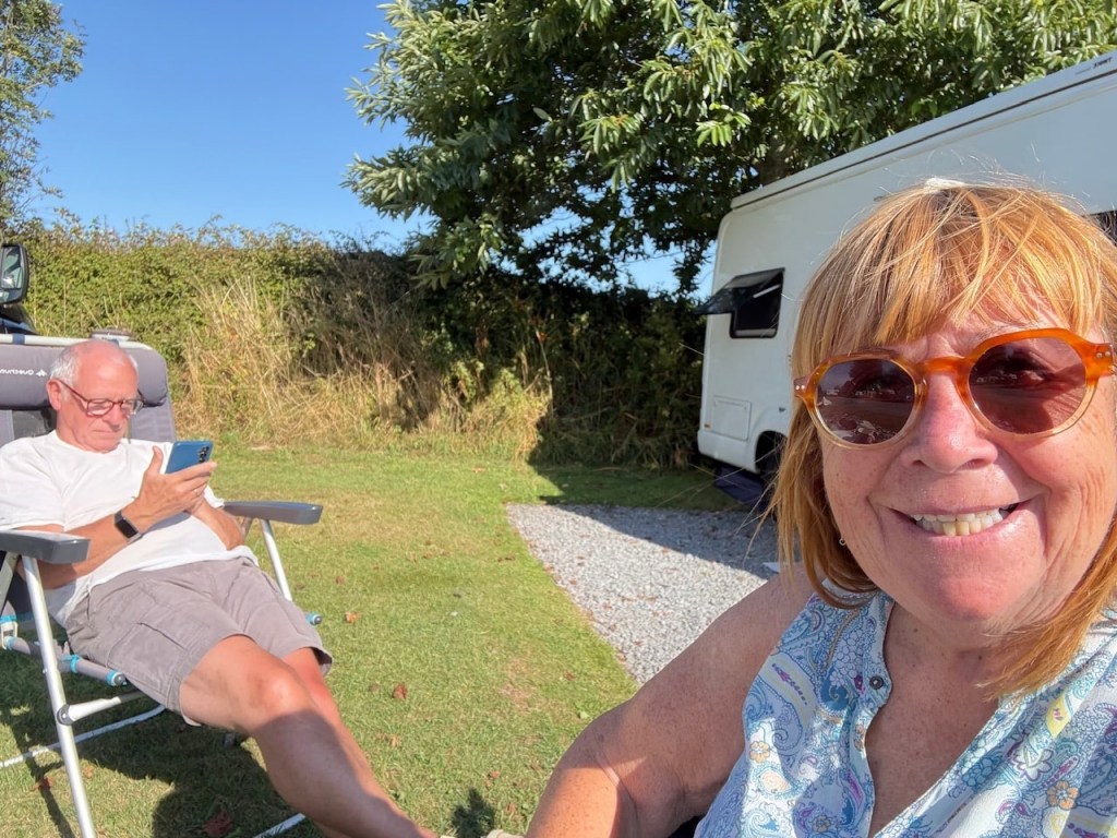 We stop at a very busy Sainsbury’s on the outskirts of Dartmouth for a restock of the fridge and fresh bread and then manage to overshoot the campsite. We realise straight away and T thankfully finds a good spot on the narrow road to turn us around.