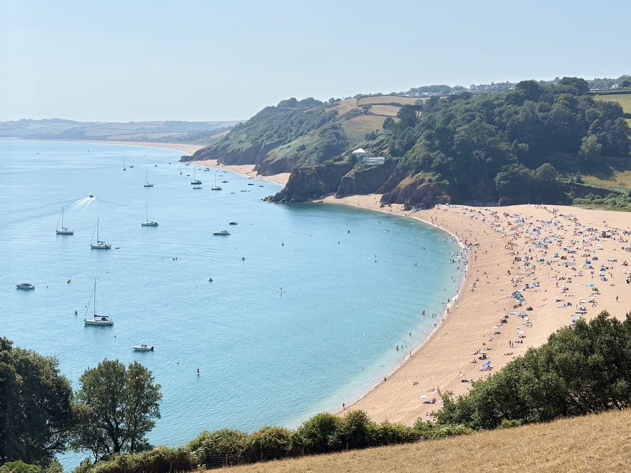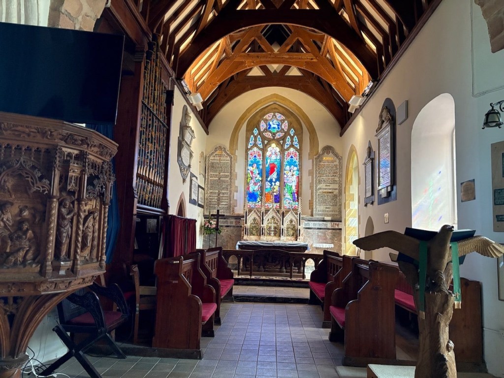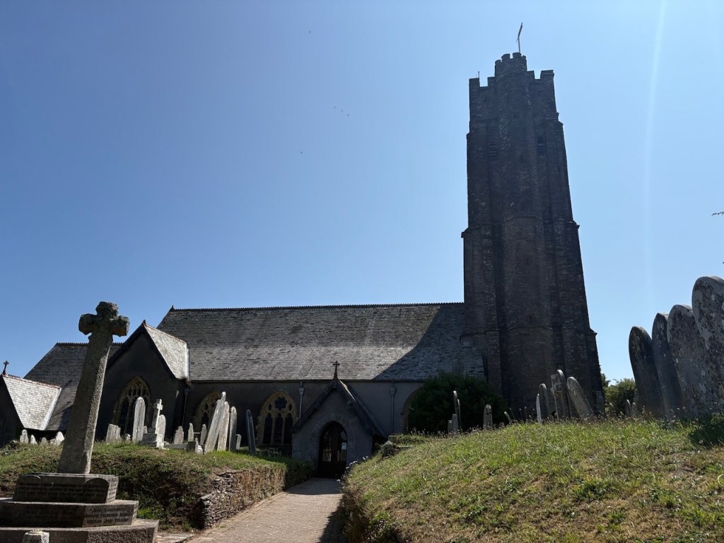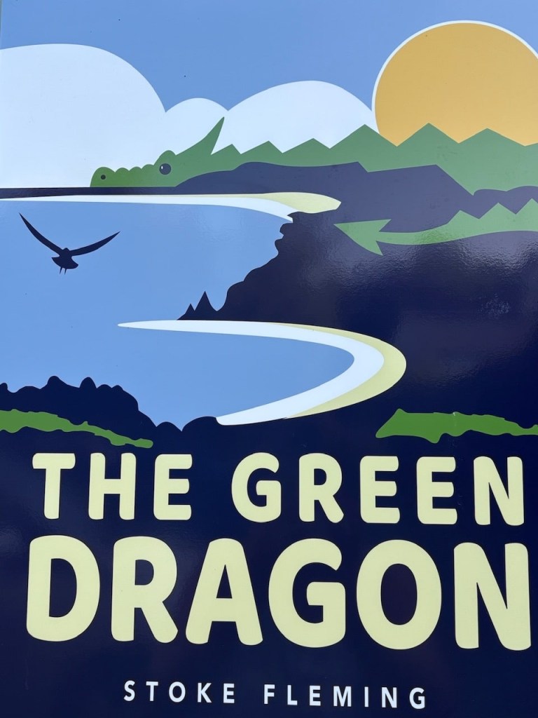 Heading for the beach we walk back down to Stoke Fleming, passing the Green Dragon Inn again. We visit St Peter’s the local church opposite the pub before walking down the coastal path, crossing the A379 and then down a forest trail to Blackpool Sands. It’s less than 30 minutes walk all downhill.