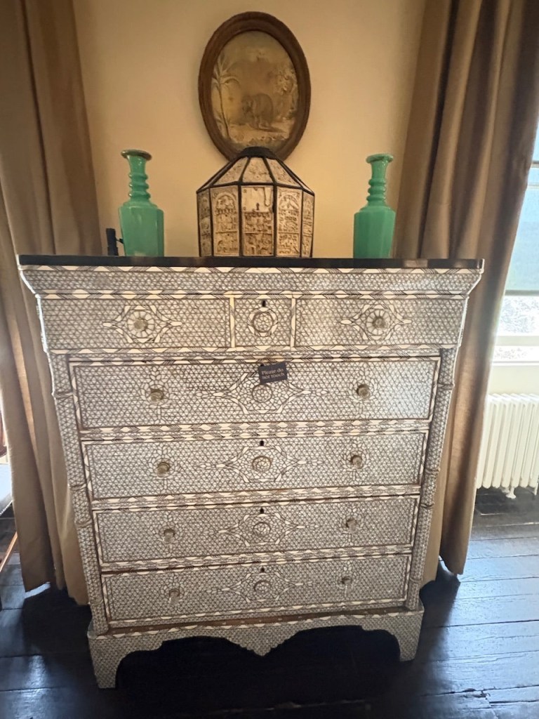 It’s a plain looking large house surrounded by extensive gardens. It’s set in the 1950’s and stuffed to the gills with the original family furniture and contents gifted by Agatha’s daughter and grandson. It makes for an interesting and enjoyable wander through the different rooms with volunteer guides ready to answer any questions. A mural painted by the coast guard is still on the walls of the Library.