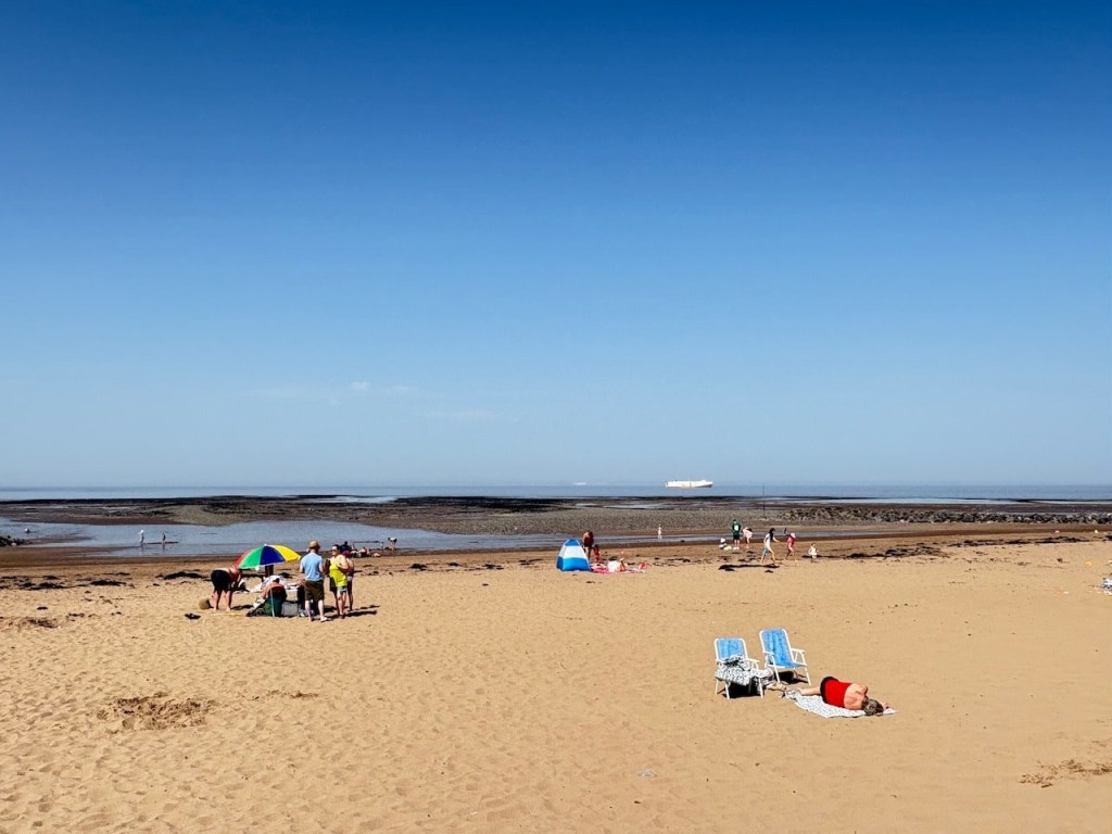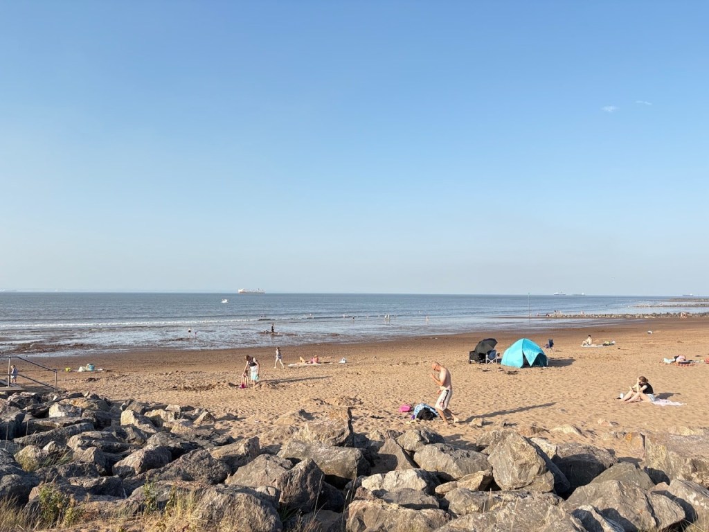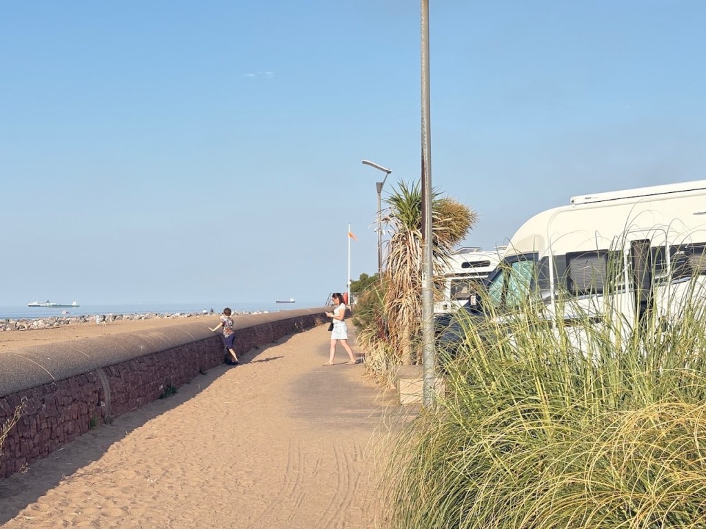 It’s sunny and very hot so the beach and the car park are rammed but luckily we find a spot. It’s a tight fit but we squeeze in. It’s £7.50 for 24hrs parking which is good for us.