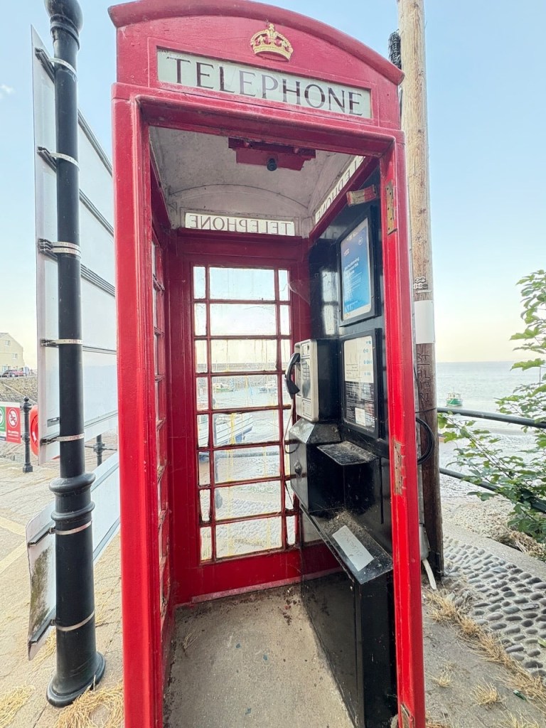We decide to walk to the harbour at the other end of the curved promenade which fronts a long sandy beach. The town experienced serious flooding in 1990 and the original beach was swept away. The prom and new sea defences were built over the next 11 years and then the beach was rebuilt. However Minehead is still experiencing flooding and we can see signs of flood protection on the houses facing the prom and sea. The town sits at the bottom of an outcrop of Exmoor called North Hill.