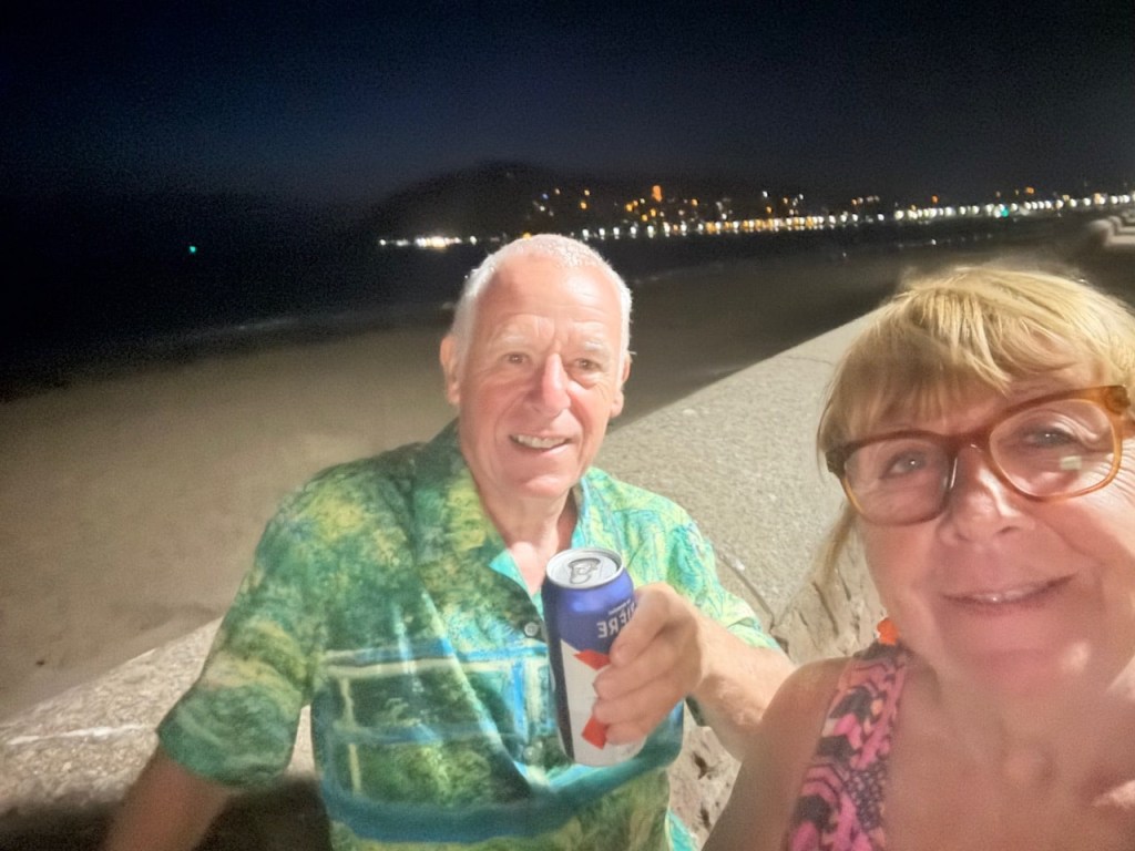 Back at the van we enjoy a drink sitting outside listening to the sea lapping the beach.