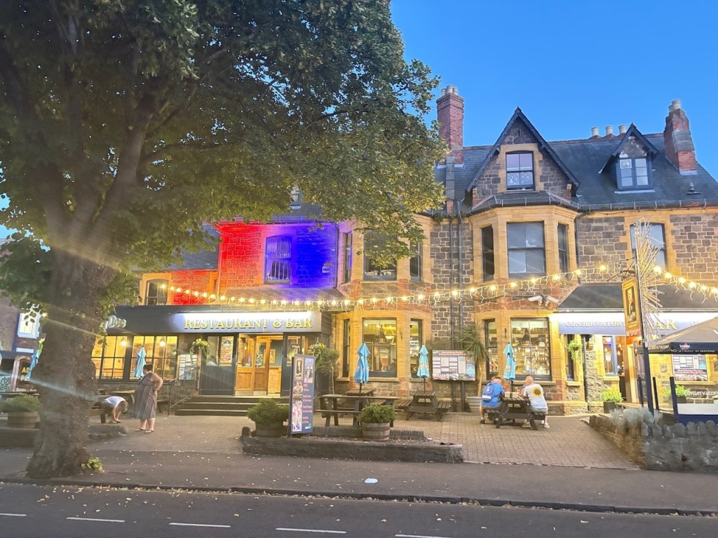 We stop at The Old Ship Aground and enjoy a drink overlooking the harbour. Next we visit The Quay and enjoy some pub grub. Our final stop is at The Hairy Dog on The Avenue which looks like it might be the entertainment in Minehead.
