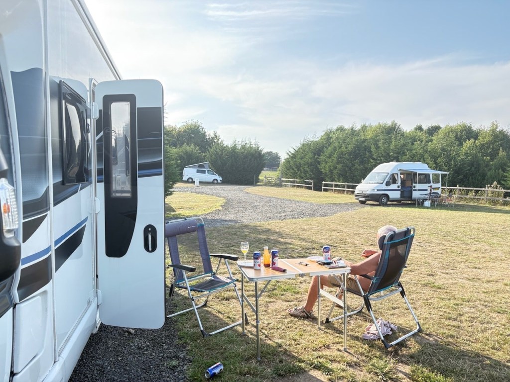 We leave an overcast but warm Minehead and head north east. Lots of slow narrow A roads before we hit the M5. We are staying at Wassel Grove Campsite not far off that motorway. It’s a basic site with no electricity but lovely views.