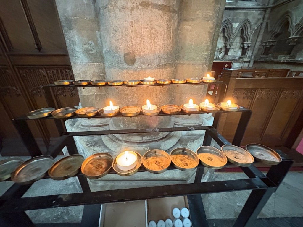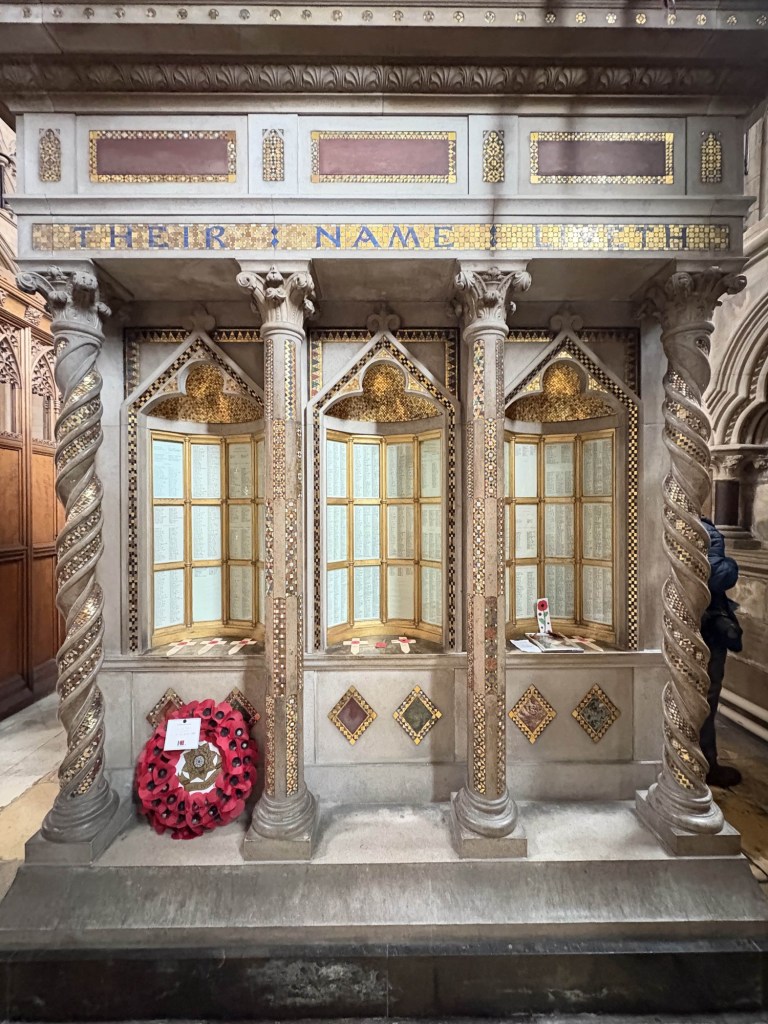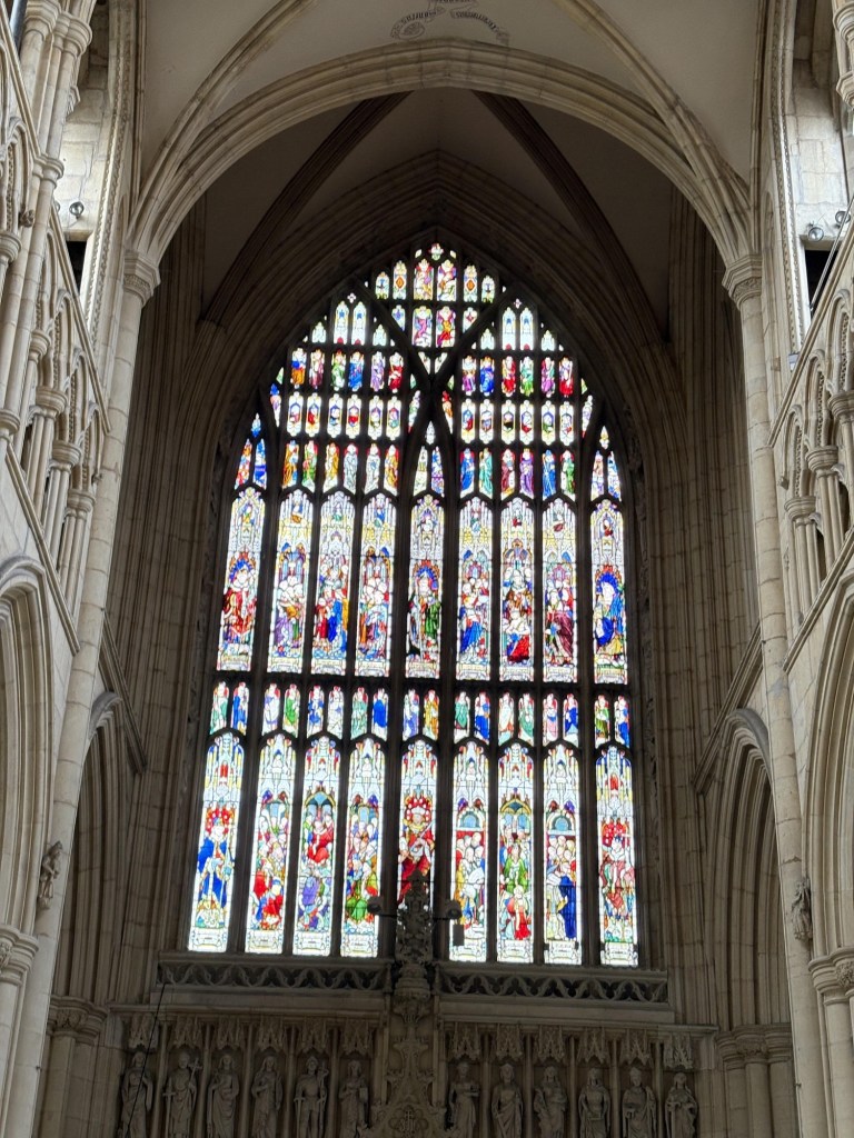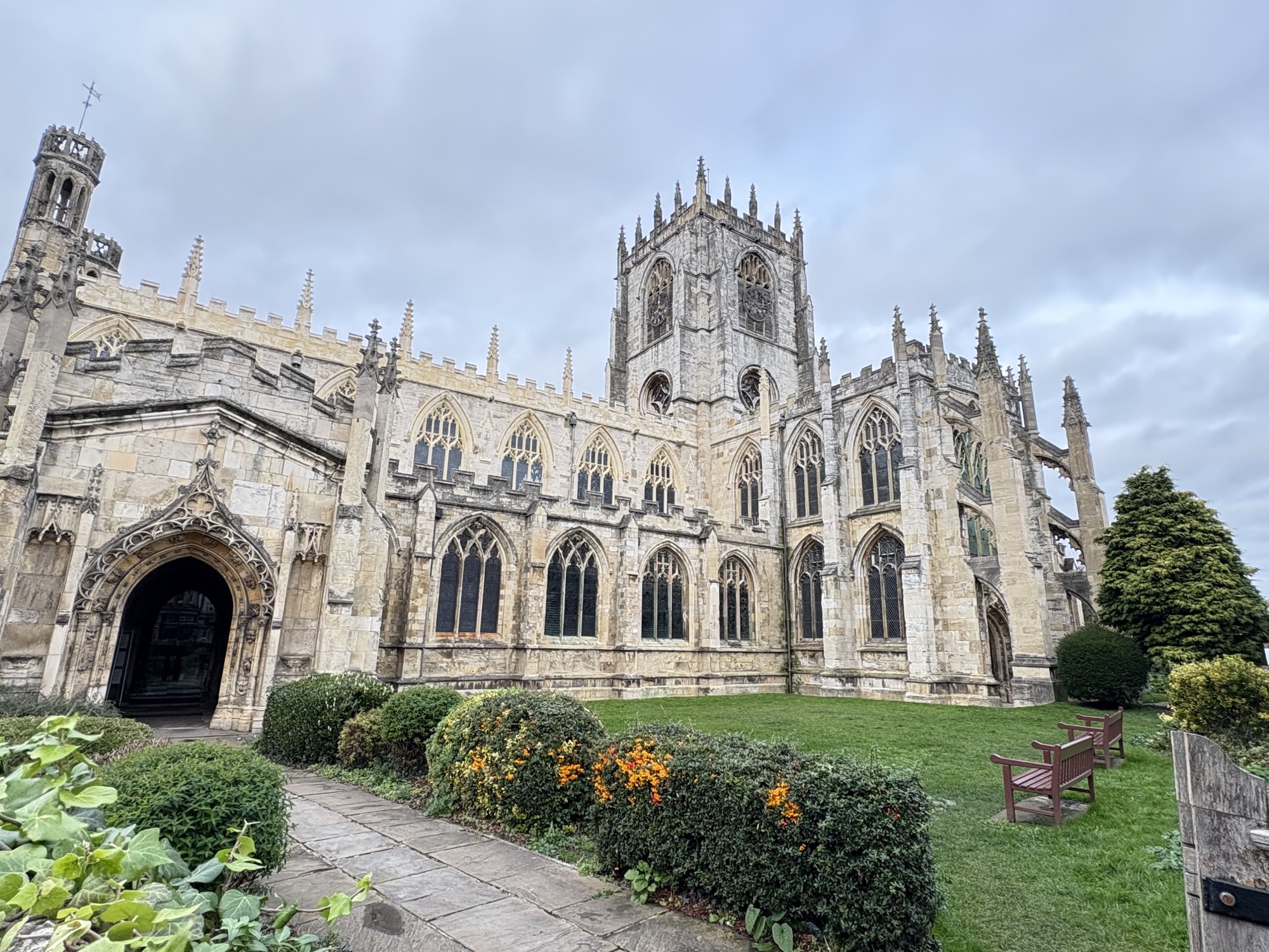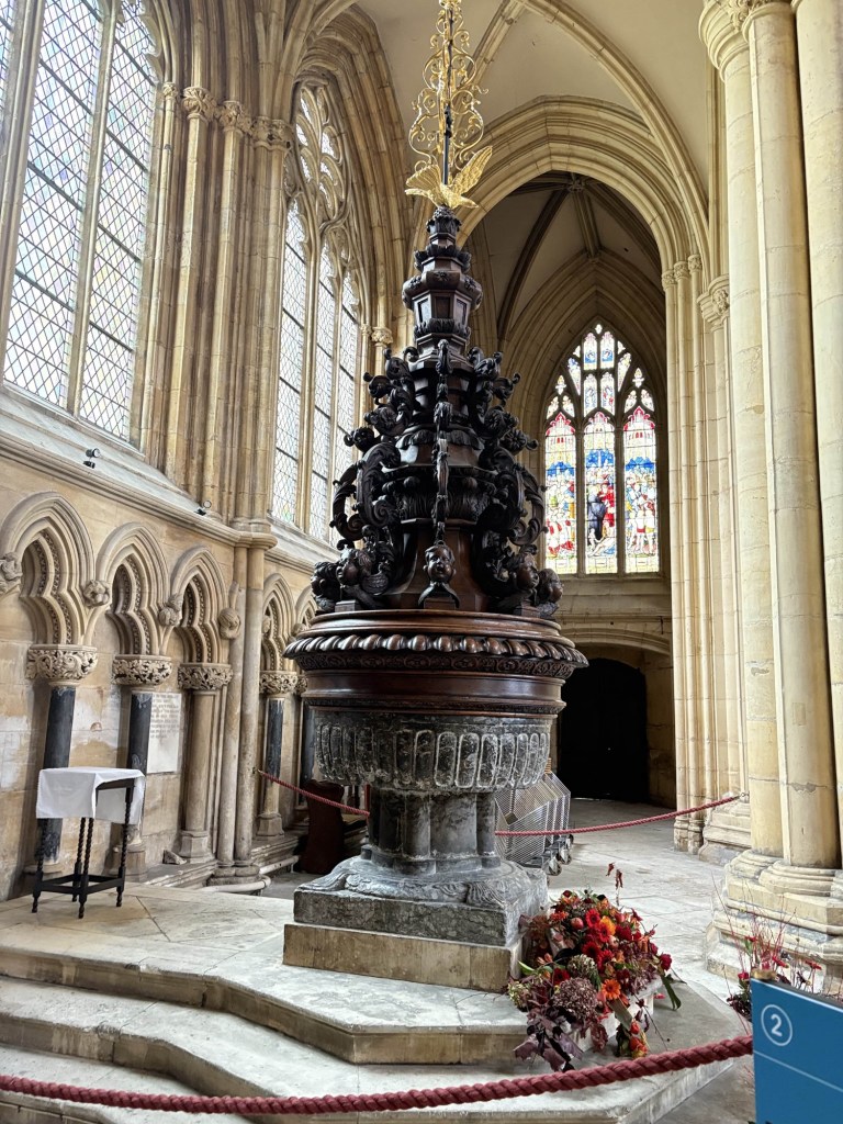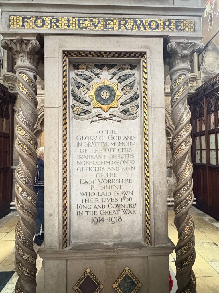 The skies are grey today and we wake to rain. A leisurely late breakfast before we head out around midday now the rain has stopped. Beverley Minster is our first destination and the building is lovelier on the outside as it feels strangely cramped on the inside. However we do enjoy a good long wander around. There’s a beautiful hand written war memorial and some nice stained glass.