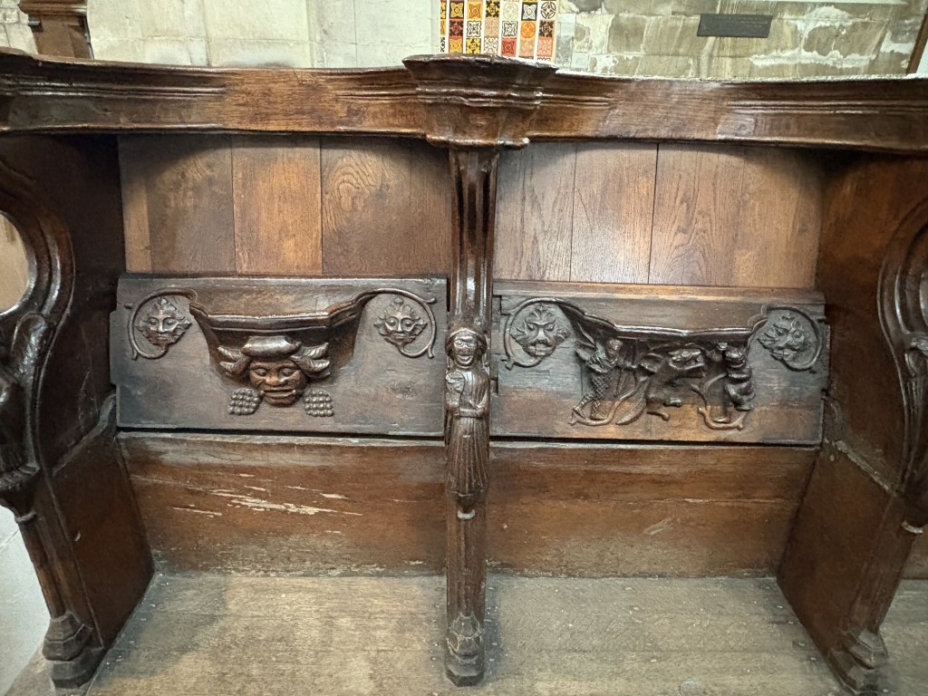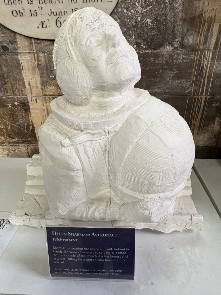 Next is St Mary’s church with its beautiful wooden painted ceilings and gorgeous stone work. We see a display of plaster model heads of ‘Women of Influence’ that were used by stonemasons as guides to carve them and they are now mounted outside on the church.
